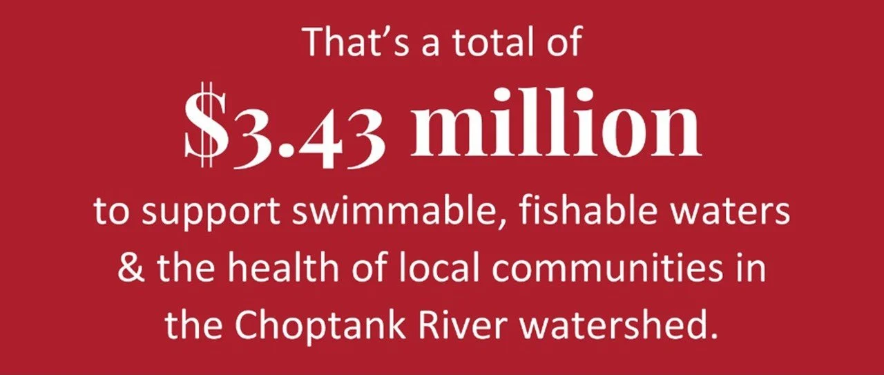 $2 million from Maryland’s Whole Watershed Fund to support agricultural, stormwater, and fish passage projects in the Upper Choptank watershed.