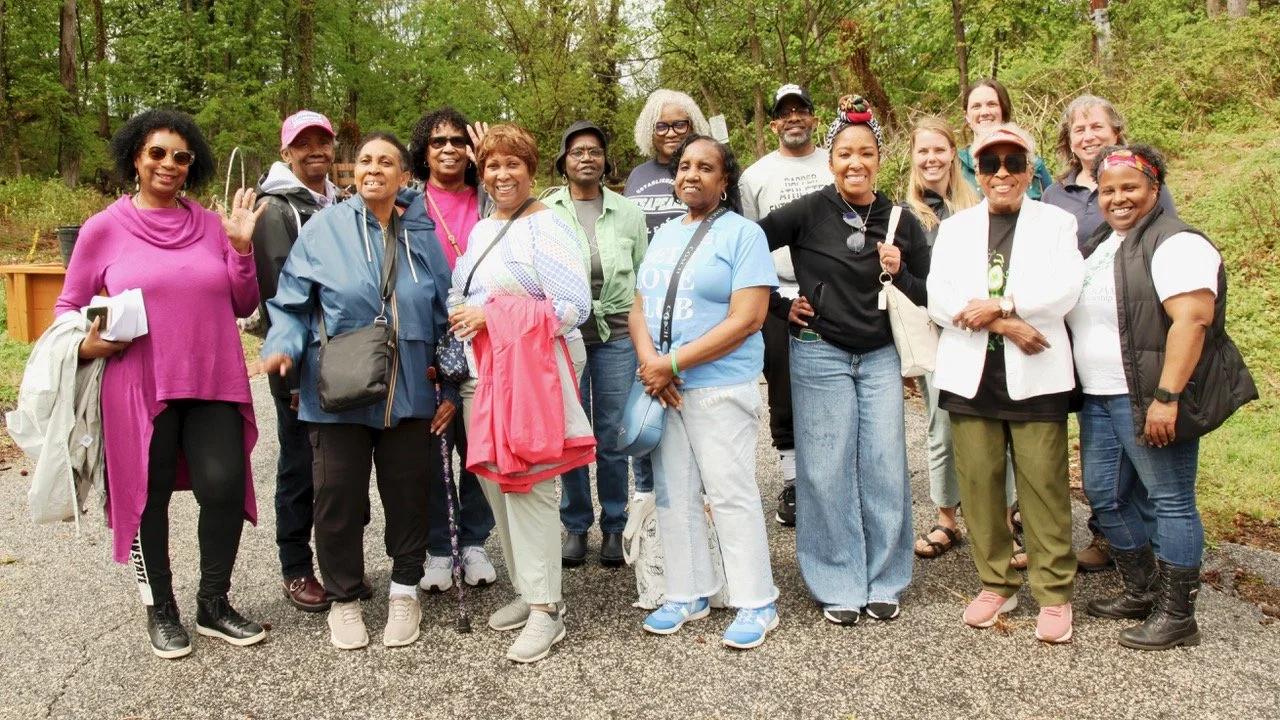 For many of the LEAD participants who also serve as members of the Jonestown Community Development Corporation (JCDC), a community-based non-profit focused on improving the quality of life for Jonestown residents and the surrounding Caroline County area, lessons from Stillmeadow’s latest project proved especially valuable. One of JCDC’s longtime goals (and one prioritized during the LEAD visioning exercise) is the development of a community center and resilience hub through the acquisition and rehabilitation of the former Jonestown School, a building that still stands within the Jonestown community. As the LEAD 2.0 crew toured Stillmeadow, they were able to see a real life example from another community that had brought a similar vision to life. Participants toured the Peace Park, baptism ponds, and resiliency hub, asking questions and sharing their own experiences with the BGREEN partners. The field trip also coincided with City Nature Challenge, an annual science competition hosted at Stillmeadows Peace Park to explore, identify, and document urban plants and wildlife using the iNaturalist app, which demonstrated yet another thoughtful way the space was being activated to serve the greater community.
